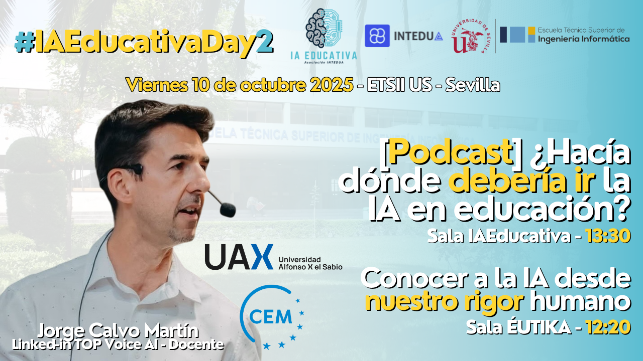 Es un lujo poder contar la participación de Jorge Calvo Martin en el #IAEducativaDay2 del 10 de octubre en Sevilla.