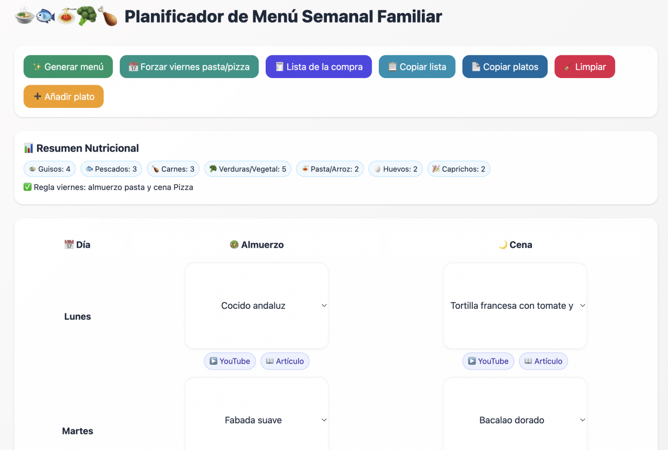 Esto es lo que hemos hecho (con la ayuda de la IA) para facilitar la elaboración de un menú semanal de comidas.